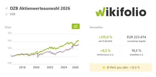 Nicht ein einzelner Manager, sondern die gebündelte Überzeugung einer ganzen Leserschaft steht hinter dem wikifolio DZB Aktienwerteauswahl 2026. Im Juni 2016 ließ das Fachmagazin Der Zertifikateberater seine Abonnenten abstimmen: Aus vier Regionen - Deutschland, Europa, Amerika und dem Rest der Welt - waren jeweils 20 Aktien zur Wahl gestellt worden, von denen die fünf meistgenannten ins Portfolio einzogen. Tobias Kramer von der DZB Media GmbH setzt als Verwalter des wikifolios dieses bemerkenswerte Vorhaben seitdem konsequent um. Denkbar schlicht sind die Spielregeln: Jeder Titel startete mit rund fünf Prozent Gewichtung, anschließend greift striktes Buy & Hold. Umgeschichtet wird nur, wenn ein Unternehmen durch Übernahme oder Fusion aus dem Universum fällt. Was als Gedankenexperiment begann - kann das kollektive Urteil engagierter Privatanleger einen breiten Index schlagen? - nähert sich nach fast einem Jahrzehnt nun seiner eigenen Zielmarke. Die Antwort auf diese Frage dürfte nicht nur für die treuen Leser des Zertifikateberaters spannend werden. Unter den 20 Bestandsaktien sind auch einige Unternehmen, die durchaus im Dunstkreis von Longevity einzuordnen sind: Alphabet C, Novo Nordisk, Siemens, Novartis und Fresenius. Seit der Auflegung im Juni 2016 hat das wikifolio eine grundsolide durchschnittliche Jahresperformance von +12,5 % erzielt, was zu einem Gesamtzuwachs von +215 % geführt hat.