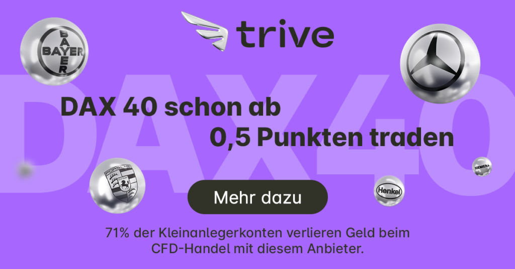 CFD sind komplexe Instrumente und gehen wegen der Hebelwirkung mit dem hohen Risiko einher, schnell Geld zu verlieren. 71% der Kleinanlegerkonten verlieren Geld beim CFD-Handel mit diesem Anbieter. Sie sollten überlegen, ob Sie verstehen, wie CFD funktionieren und ob Sie es sich leisten können, das hohe Risiko einzugehen, Ihr Geld zu verlieren. Der Wert der Investitionen kann sowohl steigen als auch sinken.