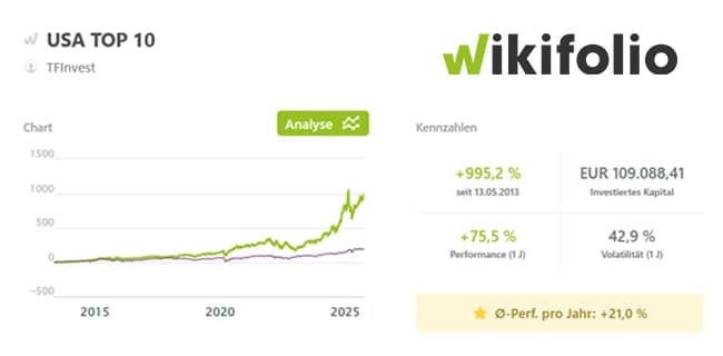 Im wikifolio USA TOP 10 setzt Torsten Fuchs auf eine klare, performanceorientierte Auswahl der stärksten US-Aktien. Investiert wird ausschließlich in Werte, die sowohl in den letzten vier Wochen als auch über die letzten sechs Monate eine überdurchschnittliche Rendite erzielt haben. Die Auswahl speist sich aus dem breiten Spektrum der großen amerikanischen Indizes - darunter Nasdaq, Dow Jones, S&P 100 und S&P 500. Auf diese Weise legt er sich bewusst auf trendstarke Werte fest, wobei Marktführer ebenso wie jüngste Kursgewinner interessant sind. Die Haltedauer ist nicht festgeschrieben, aber meist eher kurz- bis mittelfristig ausgerichtet - schwächelnde Positionen werden konsequent und schnell ausgetauscht. Als Entscheidungshilfe dienen hauptsächlich Chartverläufe und Finanznachrichten, recherchiert über Online-Quellen mit Fokus auf eine positive technische Entwicklung. Das wikifolio reagiert damit aktiv auf Marktbewegungen und orientiert sich laufend an der realen Performance einzelner Titel - ein Ansatz, der Schnelligkeit und Disziplin vereint. Palantir Technologies ist mit knapp 30 % Gewichtung mit Abstand der größte seiner acht Einzelwerte. Es folgen weitere Tech-Giganten wie Apple, Micron Technology, Meta Platforms und Amazon. Der Cash-Bestand ist zurzeit vernachlässigbar. Obwohl bereits im Mai 2013 aufgelegt beträgt die durchschnittliche Jahresperformance des wikifolios immer noch eindrucksvolle +21,0 %. Dies summiert sich zu einem Gesamtgewinn von +988 %.