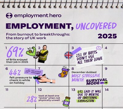 LONDON, Dec. 4, 2025 /PRNewswire/ -- Employment Uncovered, launched by global employment platform Employment Hero, reveals what the past year at work really looked like for people across the UK. The new research explores how people worked, rested and managed pressures throughout 2025.