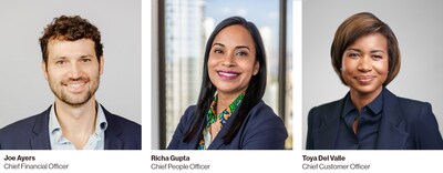 Joe Ayers named chief financial officer, Toya Del Valle named chief customer officer, and Richa Gupta named chief people officer