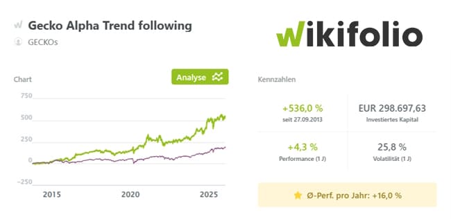 Trends aufzuspüren, bevor sie Mainstream werden, das ist der Anspruch von Thomas Hubl mit seinem wikifolio Gecko Alpha Trend following. Anders als andere bindet er sich weder an eine Anlageklasse noch an eine feste Haltedauer. Ob Einzelaktien, ETFs oder Fonds: Entscheidend ist allein, dass ein klarer Trend erkennbar ist. Um diesen frühzeitig zu identifizieren, nutzt Hubl ein breites Arsenal technischer Werkzeuge - von Trendbestätigungsformationen über Wendeindikatoren bis hin zu Zeitzyklen. Fehlt ein eindeutiges Signal, scheut er sich auch nicht, über längere Phasen in Cash zu sein und auf die nächste Chance zu warten. Entsprechend verbleiben manche Positionen nur wenige Tage im Portfolio, während andere dort über mehrere Jahre verharren. Aktuell ist Hubl mit 24 Positionen quasi vollinvestiert. Neben dem Rüstungsüberflieger Rheinmetall tummeln sich vor allem riesige Tech-Konzerne in seinem wikifolio - mit TSMC, Amazon, Microsoft und IBM als Beispielen. Das übergeordnete Ziel ist ambitioniert, aber klar formuliert - in jeder Marktlage eine positive Jahresrendite einzufahren. Dieser Anspruch an sich selbst wird in der Praxis durch eine Mischung aus Geduld und Entschlossenheit umgesetzt. Der schmale Grat besteht darin, jene Trends frühzeitig zu erkennen, die sich als besonders nachhaltig und profitabel erweisen. Hubl gelingt das bemerkenswert gut. So legte der Wert im Jahresdurchschnitt um einwandfreie +16,0 % zu. Die Gesamtrendite seit Ende September 2013 beläuft sich auf ebenfalls sehr starke +535 %.