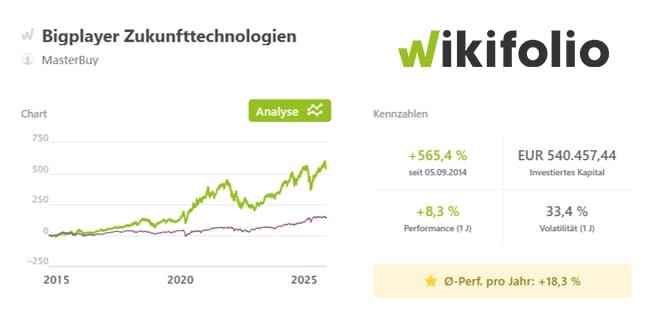 Das wikifolio Bigplayer Zukunfttechnologien von Bernhard Derix besteht vor allem aus Unternehmen, die auch langfristig zu den dominierenden Kräften im Technologiebereich gehören sollten. Statt auf kurzfristige Bewegungen oder taktisches Trading setzt er auf strukturelle Trends, die sich über mehrere Jahre oder sogar Jahrzehnte entfalten. Gesucht werden Geschäftsmodelle, die nachweislich innovativ sind und deren Bedeutung im kommenden technologischen Zeitalter weiter zunehmen dürfte. Dadurch werden die Transaktionen hier nicht von Marktstimmungen, sondern ausschließlich von veränderten Zukunftsaussichten der einzelnen Werte beeinflusst. Während viele Anleger versuchen, Schwankungen zu deuten oder vermeintlich ideale Einstiegszeitpunkte zu finden, ist das wikifolio konsequent voll investiert. Entsprechend beruhen die Entscheidungen zum Tausch von Positionen ausschließlich darauf, ob ein Wert an Zukunftspotenzial verliert oder ein neuer Titel als vielversprechender erscheint. Derix managt aktuell 30 Einzelaktien, darunter ist auch die eine oder andere "Black-Friday-Aktie" zu finden: Alphabet, Amazon, Hermes International, Shopify, PayPal u.a. Aufgrund des Verkaufs von BYD Ende Oktober sitzt er auf 3,9 % Cash, für ihn eher untypisch. Seit der Auflage im September 2014 summiert sich der Wertzuwachs des wikifolios auf inzwischen +565 %. Dies entspricht einer eindrucksvollen jährlichen Durchschnittsperformance von +18,3 %.