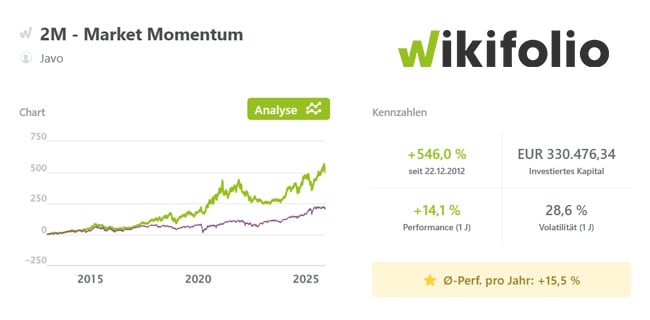 Dieter Jaworski verfolgt mit seinem wikifolio 2M - Market Momentum einen konsequent regelbasierten Momentum-Ansatz, der ausschließlich Titel berücksichtigt, die sich in einem klaren Aufwärtstrend befinden. Voraussetzung ist, dass die ausgewählten Werte entweder ein neues 52-Wochen-Hoch markiert haben oder kurz davorstehen. Dieser technische Stärkeausweis dient als Filter für jene Positionen, die genügend Dynamik besitzen, um innerhalb der nächsten zwei bis drei Monate weitere Kursfortschritte erzielen zu können. Besonders attraktiv erscheinen Jaworski Situationen, in denen die Trendkraft so ausgeprägt ist, dass sogar erhebliche Überrenditen winken. Allerdings wird das Momentum nicht isoliert betrachtet, sondern stets in ein übergeordnetes Qualitätsverständnis eingebettet. Neben der Trendstärke legt Jaworski nämlich großen Wert auf betriebswirtschaftliche Solidität: robuste Margen, eine gesunde Bilanzstruktur und ein überschaubarer Verschuldungsgrad. Das wikifolio besteht aus zwei großen Blöcken. Den ersten bilden zwei ETFs auf US-Indizes, die über 51 % des Volumens ausmachen. Im zweiten Bereich (43,8 %) finden sich 20 Aktienwerte wie Shopify, Amazon, Broadcom, Lam Research und Nvidia. Ein Cash-Bestand von 4,5 % Cash erlaubt Jaworski noch den einen oder anderen "günstigen" Einstieg. Mit einer soliden durchschnittlichen Jahresperformance von +15,5 % hat er seit dem Start im Dezember 2012 einen Gesamtgewinn von +546 % realisiert.