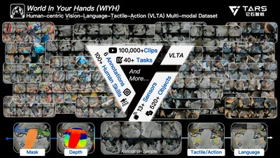 SHANGHAI, Oct. 16, 2025 /PRNewswire/ -- Lanchi Ventures-backed TARS Robotics, an AI-driven embodied intelligence company dedicated to delivering advanced robotic hardware, data, and model solutions, has launched World In Your Hands (WIYH), the world's first large-scale, real-world Vision-Language-Tactile-Action (VLTA) multimodal dataset designed for embodied intelligence. The release comes at a critical juncture for the industry, where the scarcity of high-quality training data has become a major bottleneck. Traditional data sources—such as inconsistent internet-sourced content and simulation data with limited real-world applicability—have long constrained progress in developing robust embodied AI systems.