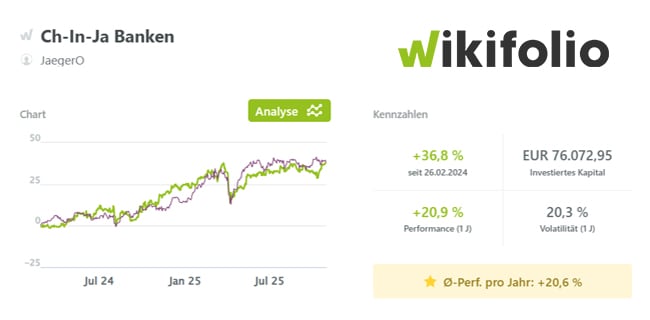 Das wikifolio Ch-In-Ja Banken von Odin Jäger konzentriert sich auf die größten börsennotierten Banken aus China, Indien und Japan. Die Investitionsentscheidungen basieren auf einer Kombination aus News Trading, fundamentaler Analyse mit regionalem Fokus und qualitativer Unternehmensanalyse, wobei ein langfristiger Anlagehorizont im Vordergrund steht. Die Idee dahinter: Jäger setzt auf die wachsende Bedeutung asiatischer Finanzmärkte und möchte so von der wirtschaftlichen Dynamik dieser drei Schlüsselregionen profitieren. Das noch junge wikifolio zeigt eine positive Entwicklung. Anleger sollten jedoch beachten, dass die starke geografische und sektorale Konzentration auf China und den Bankensektor erhöhte Risiken mit sich bringt, insbesondere bei regulatorischen Änderungen oder regionalen Wirtschaftsschwankungen. Es bleibt spannend zu beobachten, wie sich diese spezialisierte Ausrichtung in verschiedenen Marktphasen bewährt und ob sich die positive Anfangsentwicklung fortsetzt. Unter den 16 Asia-Positionen befinden sich auch eine Reihe japanischer Banken wie Yucho Ginko, Mizuho Financial Group, Resona Holdings, Mitsubishi UFJ Financial Group und Sumitomo Mitsui Financial Group. 0,8 % Cash sind nicht der Rede wert. Jäger hat seit dem Start im Februar 2024 eine durchschnittliche Jahresrendite von starken +20,6 % erzielt und damit ein Gesamtplus von +37 % erreicht.