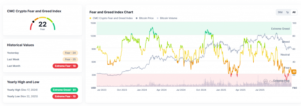 Die Angst bleibt am Markt bestimmend, Quelle: https://coinmarketcap.com