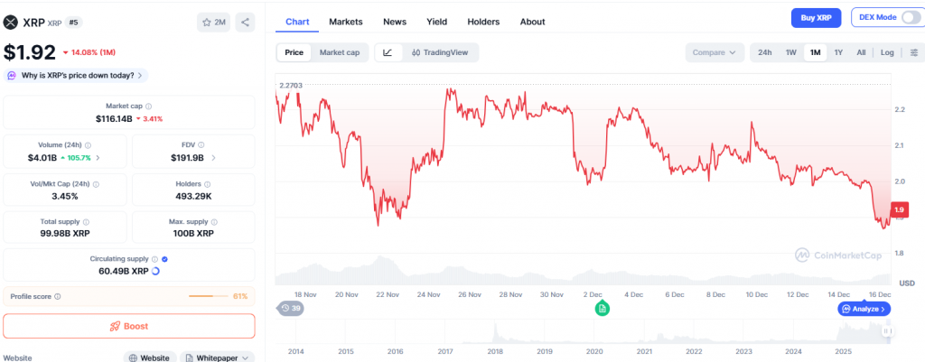 XRP Monatschart, Quelle: www.conmarketcap.com