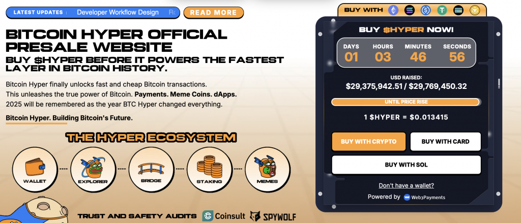 Der Token $HYPER, der das Netzwerk antreibt, befindet sich aktuell im Vorverkauf und hat bereits knapp 30 Millionen Dollar umgesetzt. Viele Analysten sehen in Bitcoin Hyper deshalb einen der spannendsten Altcoins für das kommende Jahr. Sollte sich das Momentum fortsetzen, könnte $HYPER zu den größten Gewinnern gehören mit potenziellen Kurssteigerungen von weit mehr als 1.000 %.