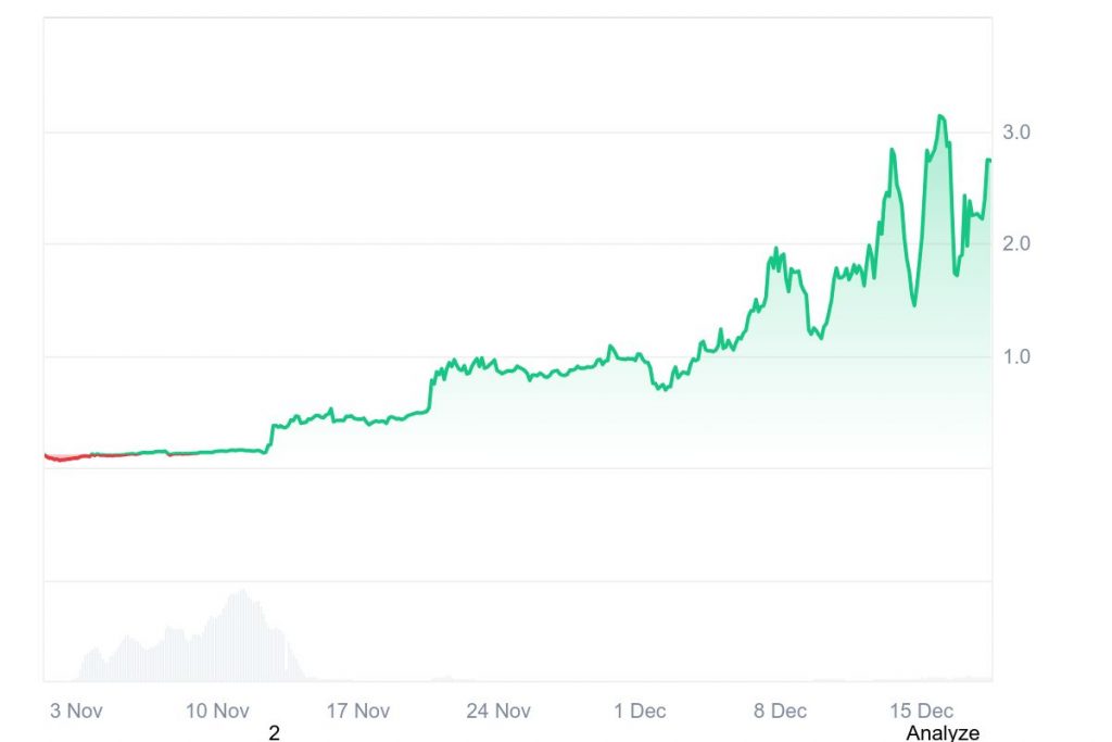 Der Coin wurde erst am 1. November auf CoinMarketCap gelistet und hat seitdem bereits einen starken Bullrun erlebt. Der Listing-Preis lag bei nur 0,10 Dollar, während BEAT heute bereits rund 2,75 Dollar wert ist, was einer Wertsteigerung von über 2.500 Prozent innerhalb von rund anderthalb Monaten entspricht.