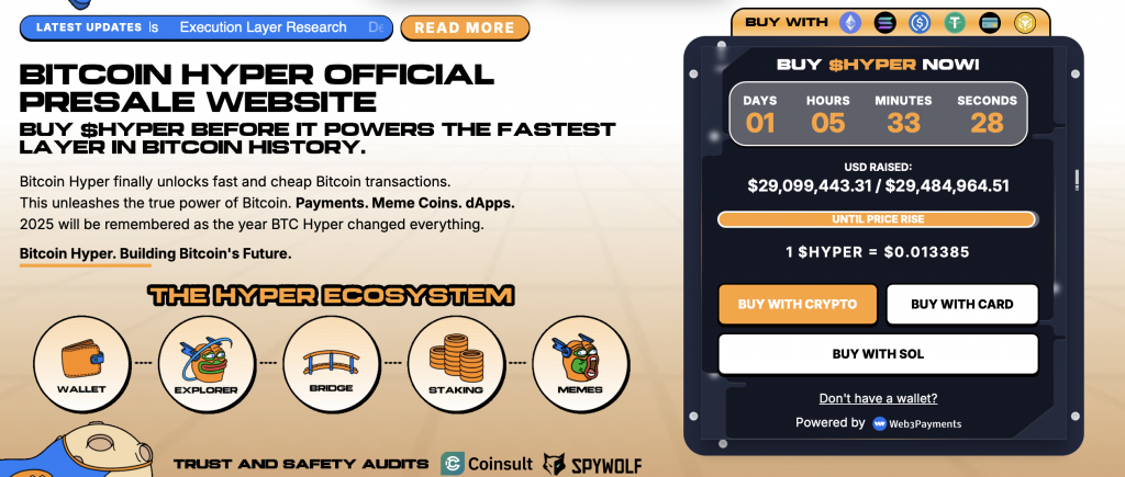 Im Zentrum dieses Ansatzes steht der $HYPER-Token, der für Gebühren, Liquidität, Staking und Governance auf der Hyper Chain benötigt wird. Da Bitcoin Hyper derzeit noch im Presale erhältlich ist und bereits rund 29 Millionen Dollar umgesetzt hat, sehen viele Investoren hier eine Möglichkeit, frühzeitig von einer Infrastruktur zu profitieren, die Bitcoin von einem reinen Wertspeicher zu einem aktiv nutzbaren Asset weiterentwickeln könnte. Sollte Bitcoin tatsächlich seine Unterbewertung aufholen, könnte Bitcoin Hyper zu den Projekten gehören, die von dieser Bewegung überproportional profitieren.