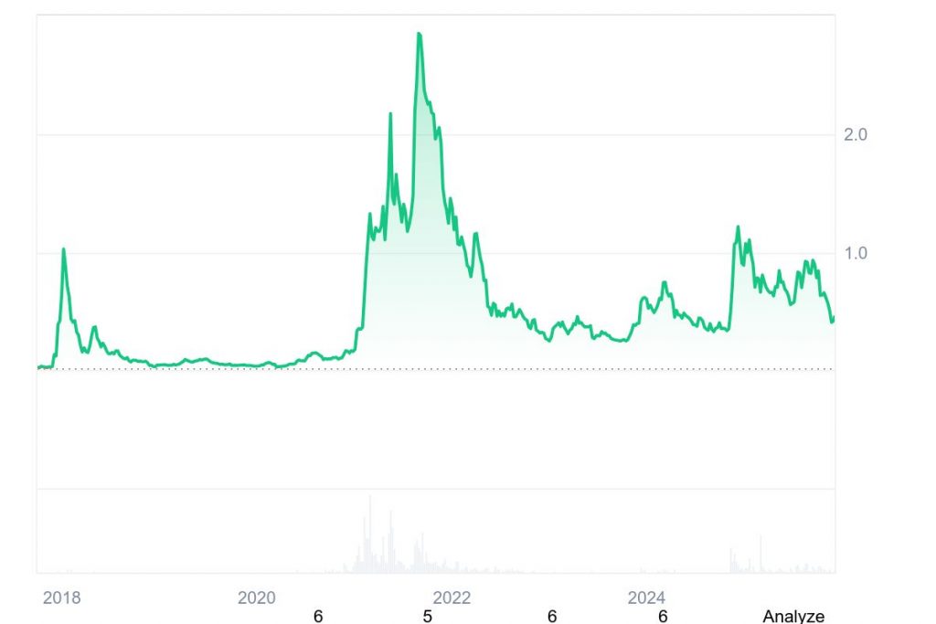 Seitdem hat die Euphorie jedoch merklich nachgelassen und immer mehr Investoren sind enttäuscht von den Versprechungen des Cardano-Gründers Charles Hoskinson. Dadurch gelang den Bullen im aktuellen Bullrun nur noch eine Rallye auf einen Höchststand von 1,2 $, der am 8. Dezember 2024 erreicht wurde. Im Verlauf des letzten Jahres ist ADA nun zunächst auf den 0,6-$-Support gefallen. Von dort konnte noch einmal ein kleiner Bounce in Richtung 1-$-Widerstand initiiert werden.