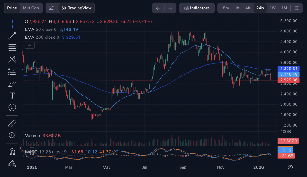 Während sich der Kryptomarkt zu Jahresbeginn 2026 weiterhin volatil zeigt und viele Anleger nach dem starken Jahr 2024 und der durchwachsenen Entwicklung 2025 vorsichtiger geworden sind, rückt Ethereum zunehmend wieder in den Fokus langfristiger Investoren. Der Kurs selbst konnte die hohen Erwartungen zuletzt nicht erfüllen. Technisch betrachtet notiert ETH klar unter wichtigen gleitenden Durchschnitten wie dem EMA50 und EMA200, was charttechnisch eher ein angeschlagenes Bild vermittelt. Doch ein Blick auf die Fundamentaldaten zeigt ein völlig anderes Bild und genau hier entsteht für ChatGPT eine massive Diskrepanz zwischen Nutzung und Bewertung.