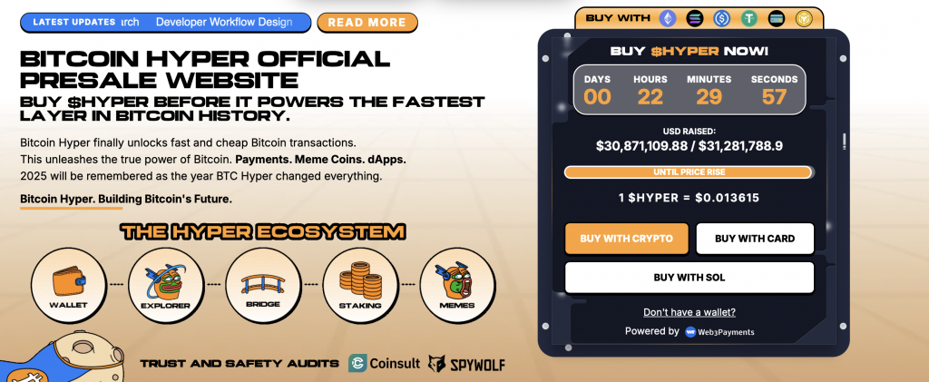 Parallel zur Entwicklung bei Ethereum gewinnt auch Bitcoin Hyper ($HYPER) zunehmend an Aufmerksamkeit. Das Projekt verfolgt das Ziel, Bitcoin erstmals vollständig für DeFi-Anwendungen nutzbar zu machen. Über eine leistungsfähige Layer-2-Architektur soll Bitcoin nicht mehr nur als Wertaufbewahrungsmittel dienen, sondern aktiv in Smart-Contract-Anwendungen, Lending-Protokollen, Staking-Modellen und dezentralen Börsen eingesetzt werden können.