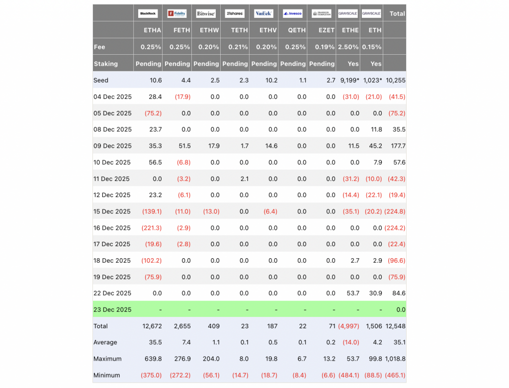 Auch prominente Investoren passen ihre Strategie an. BitMEX-Co-Founder Arthur Hayes trennte sich zwischen dem 19. und 20. Dezember von mehr als 1.100 ETH und verlagerte Kapital in ausgewählte DeFi-Projekte. Zwar hält er weiterhin einen nennenswerten ETH-Bestand, doch seine Umschichtung unterstreicht, dass selbst langfristige Bullen kurzfristig Vorsicht walten lassen.