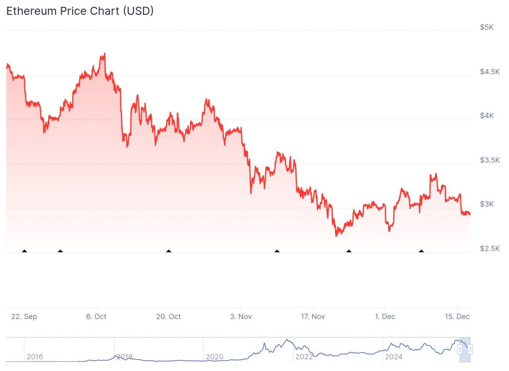 Ethereum ist erneut unter den 3000 Dollar Support zurückgefallen