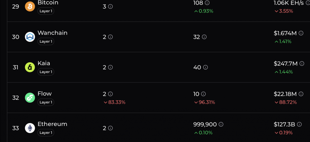 Der aktuelle Nakamoto-Koeffizient verdeutlicht, dass sowohl Bitcoin als auch Ethereum in puncto Dezentralisierung ähnlich abschneiden. Bitcoin erreicht dabei einen Wert von 3, während Ethereum mit 2 etwas darunter liegt. Damit ist Bitcoin nach diesem Maßstab minimal stärker verteilt, beide liegen jedoch im unteren Bereich des Rankings.