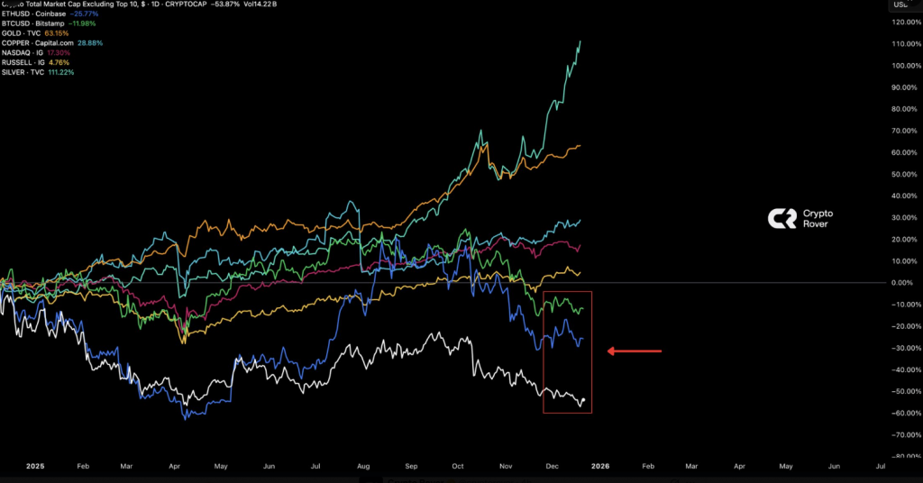 Krypto zeigt schlechtere Performance als andere Assats, Quelle: https://x.com/cryptorover/status/2003149282606522559/photo/1