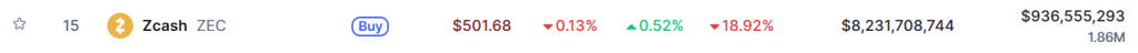 (Der Kurs von Zcash ist in den letzten 7 Tagen um fast 19 Prozent gefallen – Quelle: coinmarketcap.com)