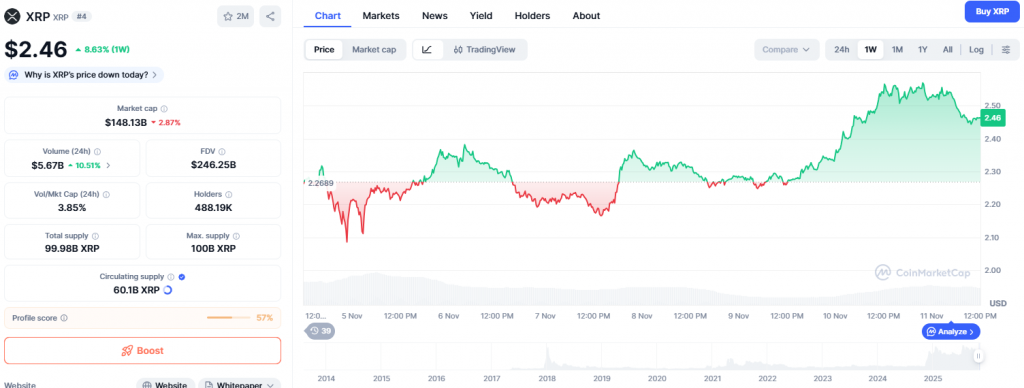 - XRP: Der Token kämpft weiter mit der Barriere bei 2,56 US-Dollar. Ein Ausbruch darüber öffnet Ziele bei 2,65 bis 2,70 US-Dollar. Rücksetzer bis 2,35 US-Dollar bleiben unbedenklich, solange diese Zone hält.