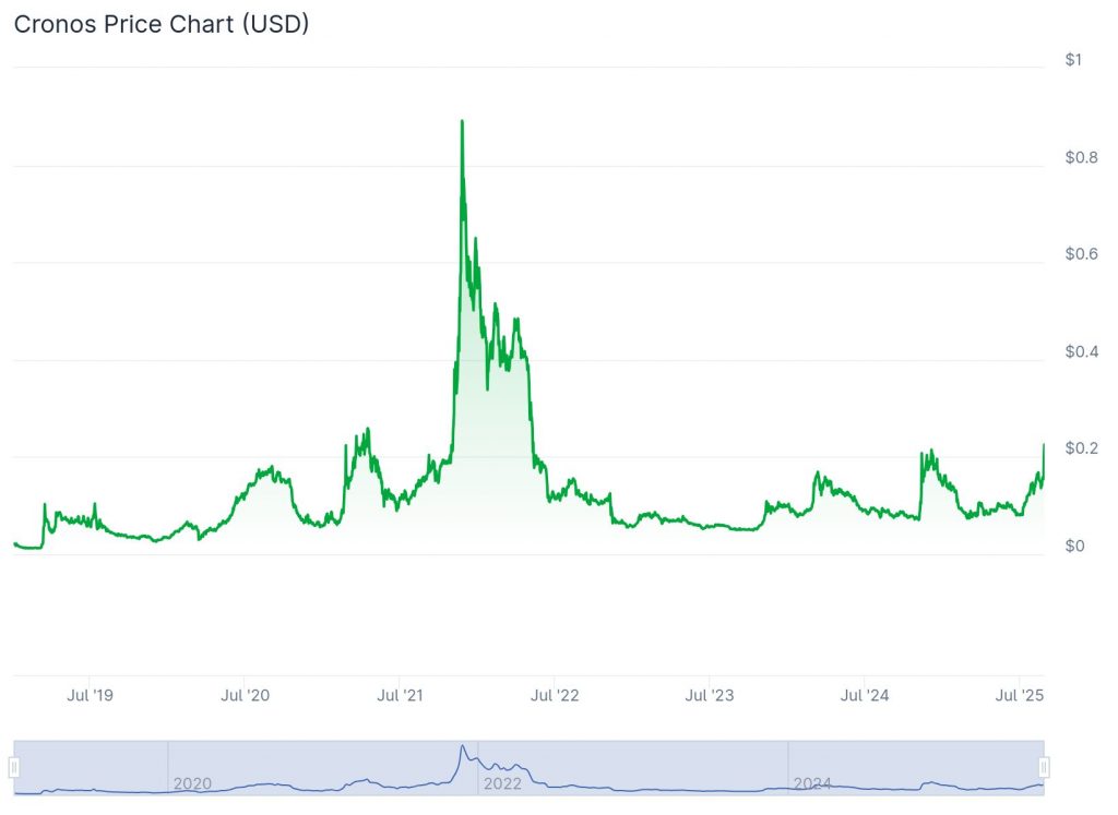 Außerdem gab es am 13. August einen Antrag für einen CRO-ETF durch Canary Capital. Auch im Trump Media Blue Chip ETF, der vor kurzem beantragt wurde, soll CRO mit 5 % enthalten sein. Die Entwicklungen könnten die Nachfrage nach CRO deutlich in die Höhe getrieben haben und teilweise mitverantwortlich für den heutigen Kurssprung gewesen sein.