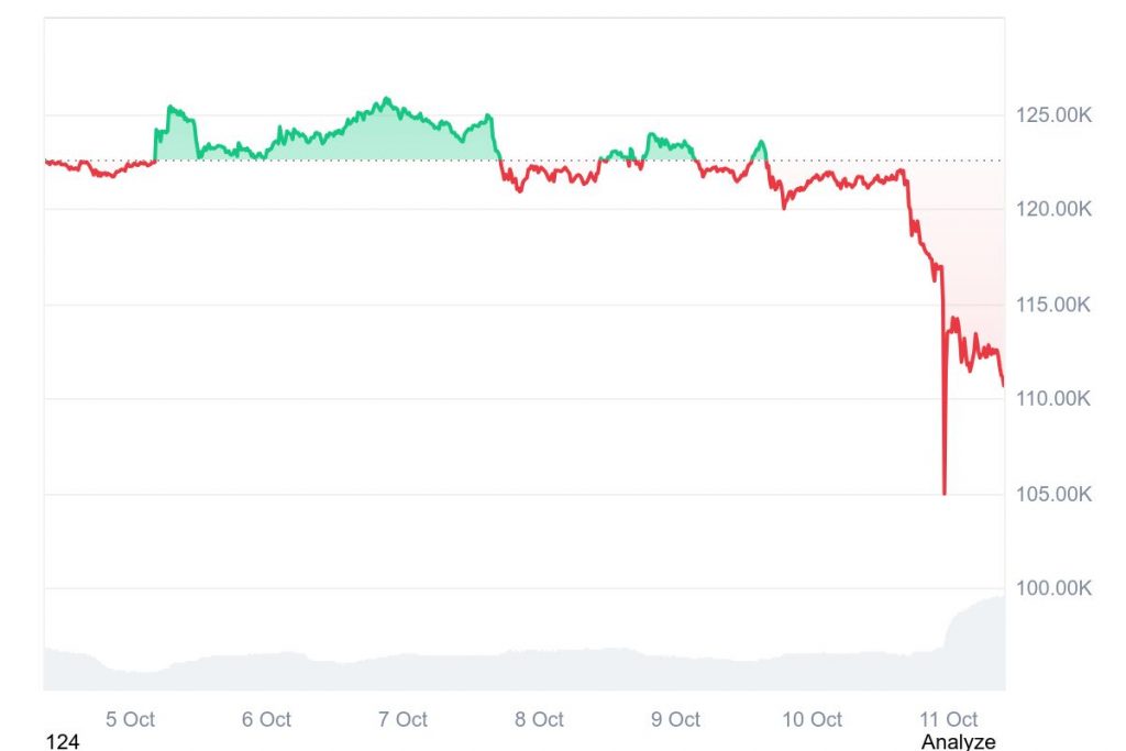 Konkret fiel die Gesamtmarktkapitalisierung des Kryptomarktes seit gestern um rund 10 %. Binnen kürzester Zeit flossen über 400 Milliarden $ an Marktkapitalisierung aus dem Kryptomarkt ab. Für Bitcoin bedeutete das einen heftigen Kurssturz von über 120.000 $ auf aktuell nur noch 111.000 $. Zeitweise war der Kurs sogar bis auf 105.000 $ eingebrochen.