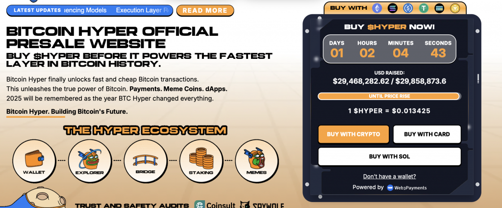 Im Mittelpunkt steht der $HYPER-Token, der für Gebühren, Governance und Liquidität auf der Hyper Chain benötigt wird. Da sich das Projekt noch im Vorverkauf befindet und bereits fast 30 Millionen Dollar eingesammelt wurden, rechnen Analysten mit einer überdurchschnittlich hohen Kursperformance nach dem Launch. Viele Experten sehen Bitcoin Hyper als potenziellen Kandidaten für eine der stärksten Rallyes im kommenden Jahr, da der Anwendungsfall stark ist und die Nachfrage bereits vor dem Mainnet-Start enorm hoch ausfällt.
