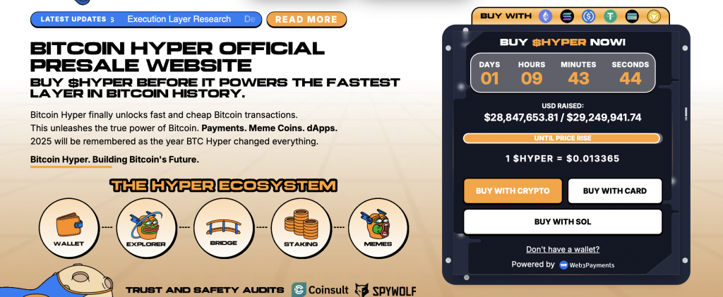 Der $HYPER-Token steht dabei im Zentrum dieses neuen Netzwerks. Er wird für Transaktionsgebühren, Staking, Governance und Liquiditätspools benötigt und könnte damit zum zentralen Motor eines auf Bitcoin basierenden DeFi-Ökosystems werden. Da der Presale bereits fast 29 Millionen Dollar umgesetzt hat, wächst das Interesse institutioneller wie privater Investoren, die eine ähnliche Dynamik wie bei frühen Ethereum- oder Solana-Investments erwarten.