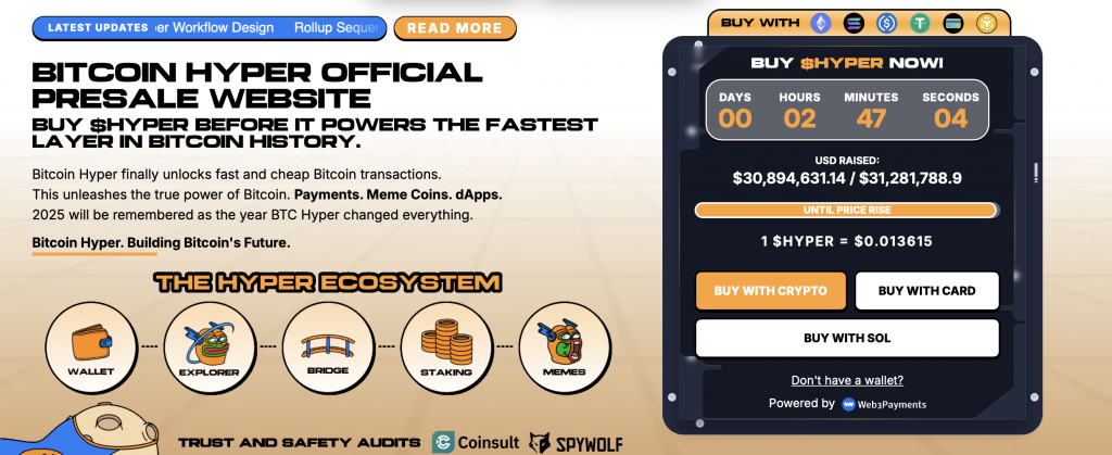 Im Zentrum dieses Ökosystems steht der $HYPER-Token, der für Gebühren, Netzwerkfunktionen und Governance genutzt wird. Aktuell befindet sich das Projekt noch im Vorverkauf. Dennoch wurden bereits rund 31 Millionen Dollar investiert, obwohl weder das Mainnet live ist noch ein Börsenlisting erfolgt ist. Diese frühe Nachfrage werten viele Beobachter als Hinweis darauf, dass Investoren hier auf eine strukturelle Erweiterung des Bitcoin-Ökosystems setzen.