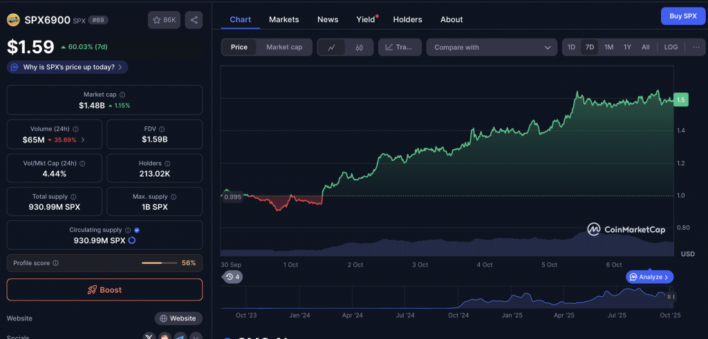 ($SPX Kursentwicklung in der letzten Woche – Quelle: Coinmarketcap)