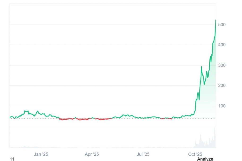 Im aktuellen Bullrun konnte ZEC über längere Zeit kaum profitieren. Noch im August lag der Kurs lediglich bei 35 $. Seit Ende September ist die Nachfrage nach ZEC aber regelrecht explodiert. Seitdem schoss der Kurs von 50 $ auf aktuell über 500 $ in die Höhe und steigerte sich dementsprechend um über 1.000 %.