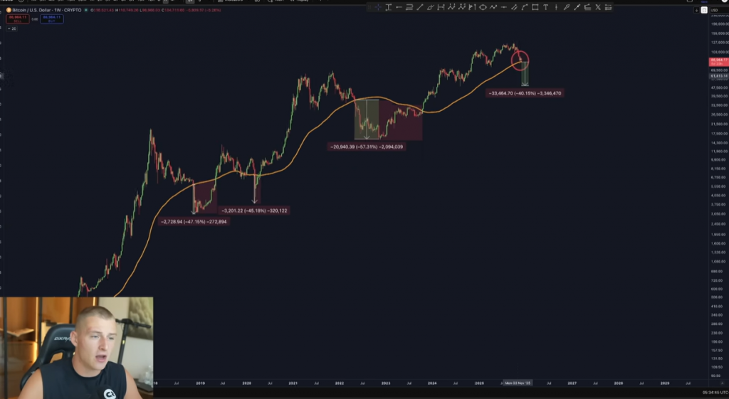 Technisch betrachtet bleibt das Umfeld jedoch fragil. Entscheidende Marken stehen im Raum. Erst ein Anstieg über 93.000 US-Dollar würde das obere Ende der aktuellen Spanne knacken und etwas Entlastung bringen. Gleichzeitig hängt der Kurs seit Wochen am 100 Wochen Durchschnitt fest. Historisch wurde bei einem Bruch dieser Zone nicht selten eine Korrektur von 30 bis 40 Prozent ausgelöst. Beispiele aus 2014, 2018 oder 2022 zeigen ähnliche Muster. Eine Bewegung in Richtung etwa 57.000 US-Dollar läge in diesem Szenario im Bereich früherer Korroekturgrößen und nahe dem 200 Wochen Durchschnitt. Dort war Bitcoin über Monate hinweg abgeprallt, bevor der Ausbruch nach oben gelungen war. Ein erneutes Erreichen dieser Zone könnte kurzfristige Reaktionen auslösen.