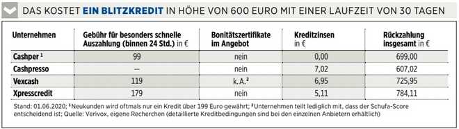 Vorsicht ist angebracht. Das Geschäft wird vor allem mit den Zusatzdienstleistungen gemacht, die neben den Zinsen anfallen können: mit Gebühren für Expressbearbeitung, für Ratenzahlung und für sogenannte Bonitätszertifikate.