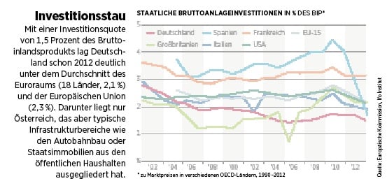 Straßen, Brücken, Strom- oder Datennetze, Schulen, Kliniken, alles das zählt zur Infrastruktur, die notwendig ist für den Wohlstand in einem Land. Ausgerechnet der deutsche Staat geriert sich hier als Sparmeister.
