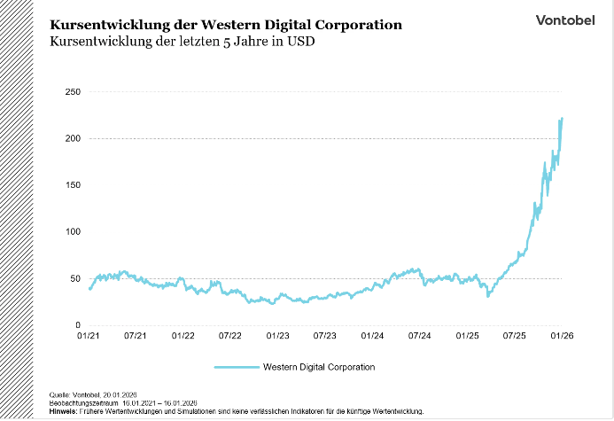Ein aktuelles Thema für das Unternehmen ist die anhaltend starke Nachfrage nach hochkapazitiven Festplatten, vor allem aus Cloud-Infrastrukturen, Unternehmensdatenzentren und Anwendungen mit großen Speicheranforderungen. HDDs gelten in diesen Segmenten weiterhin als kosteneffiziente Speicherlösung pro Terabyte, weshalb sie trotz zunehmender Nutzung von SSDs eine zentrale Rolle spielen. Gleichzeitig wirken sich längere Lieferzeiten und Herausforderungen in den Lieferketten auf die Produktverfügbarkeit aus, sodass Western Digital seine Produktion und Logistik an diese Marktbedingungen anpassen muss. Im Vergleich zu SanDisk, das sich ausschließlich auf Flash- und SSD-Technologien konzentriert, steht Western Digital im Zentrum des klassischen Massenspeichermarktes. Beide Unternehmen sind jedoch vom grundlegenden Trend steigender Datenvolumina und wachsender Speicherbedarfe betroffen, wodurch sie jeweils unterschiedliche, aber komplementäre Speichersegmente bedienen.