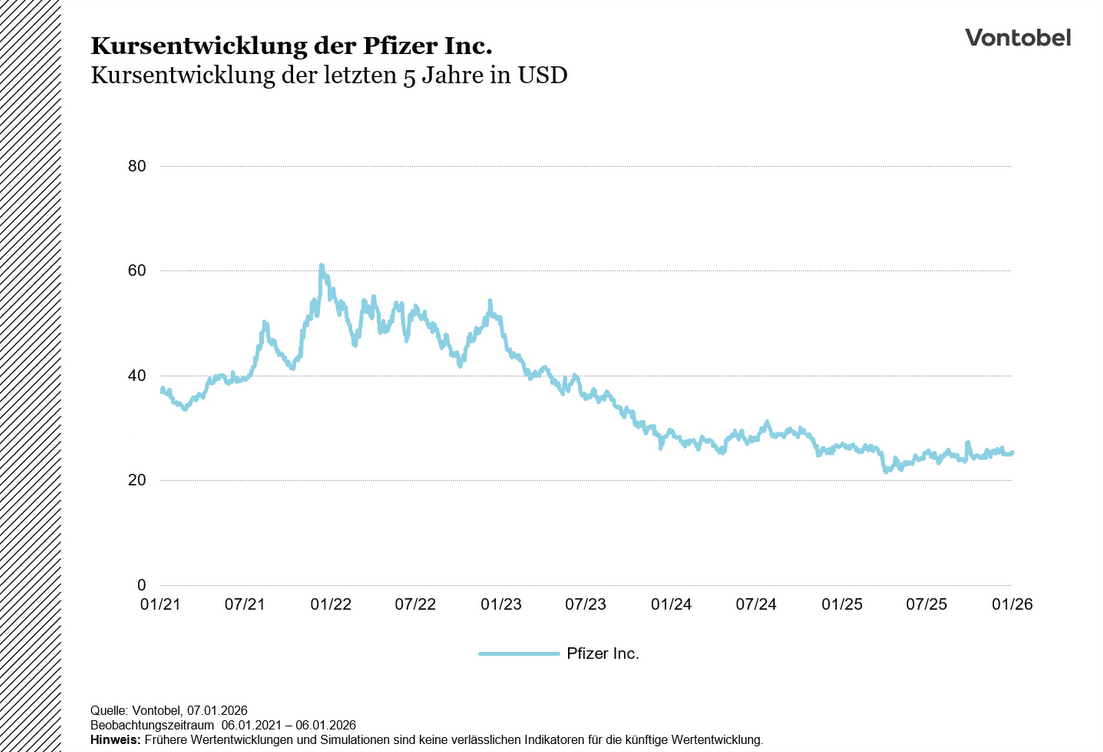 Pfizer ist ein weltweit tätiges Pharmaunternehmen, das den Großteil seiner Umsätze mit verschreibungspflichtigen Medikamenten und Impfstoffen erzielt. Zwar gehen die Umsätze nach den außergewöhnlich hohen Erlösen, während der COVID-19-Pandemie zurück - von 100,3 Mrd. USD im Jahr 2022 auf 63,6 Mrd. USD im Jahr 2024. Dennoch setzt Pfizer weiterhin konsequent auf Wachstum und Innovation.