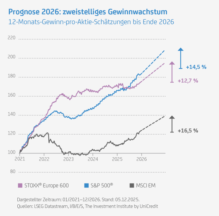 Mit Blick auf das veränderte Umfeld richten die Expertinnen und Experten des Investment Institute by UniCredit den Fokus auf die zentralen Trends der wichtigsten Regionen im Börsenjahr 2026.