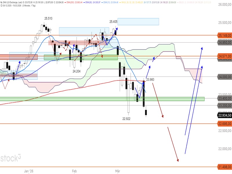 Trading Idee: DAX - Scharfe Korrektur drückt den Index erneut unter 23.000 Punkte