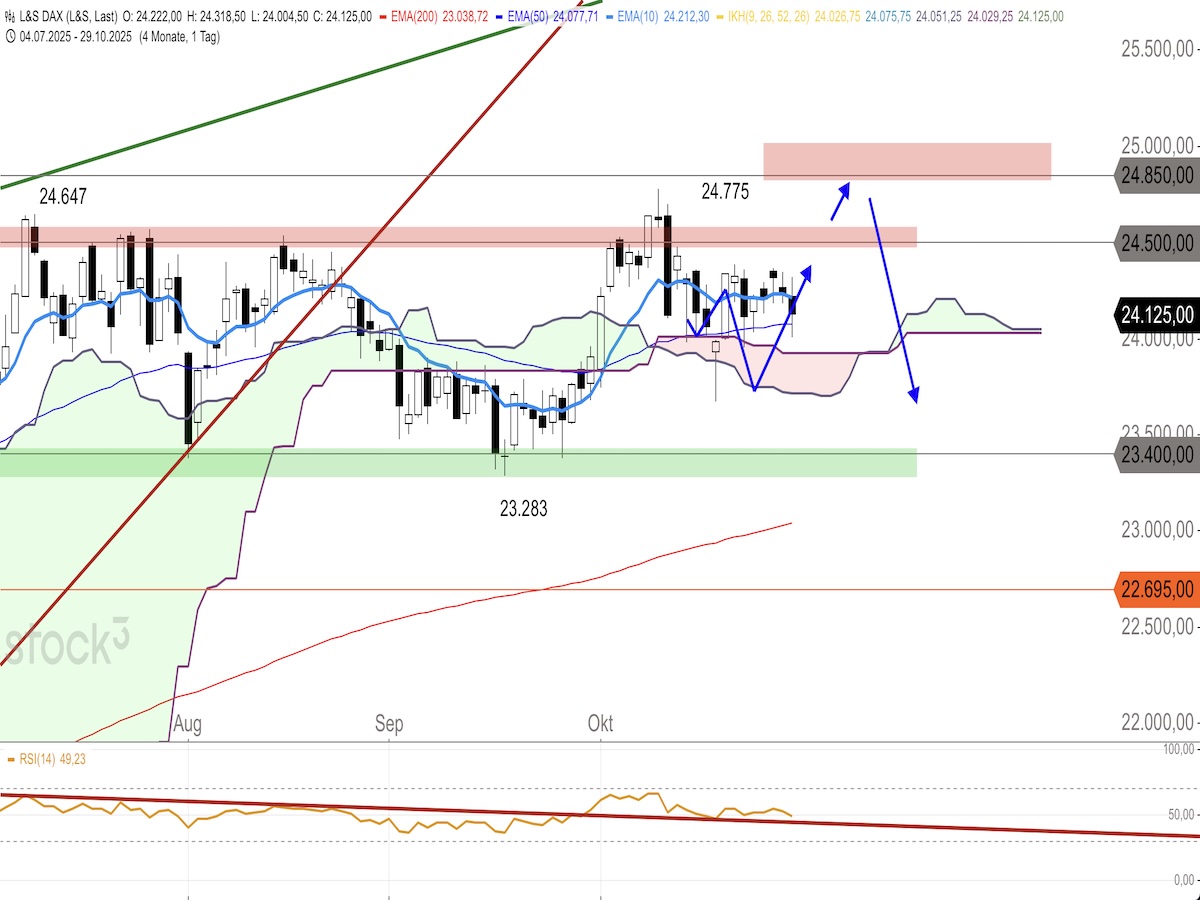 Risikohinweis: Die bereitgestellten Informationen stellen keine Aufforderung zum Kauf oder Verkauf der erwähnten Werte dar. Die besprochenen Wertpapiere sind sehr volatile und risikoreiche Anlageformen. Dies ist keine Anlageberatung, und jede Entscheidung erfolgt auf eigenes Risiko. Hinweis: Stop-Loss-Marken und Gewinnziele dienen lediglich als Orientierung und sollten an das individuelle Risiko- und Geldmanagement sowie die tagesaktuelle Marktentwicklung angepasst werden. Gewinne sollten eigenverantwortlich realisiert werden. Das Erreichen des Kursziels basiert auf dem angegebenen Zielkurs des Basiswerts. Der Autor ist zum Zeitpunkt der Analyse nicht im DAX investiert.