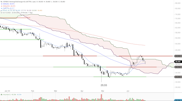 Trading Idee: Verbio fängt sich am 50er-EMA, jetzt neuer Anstieg?