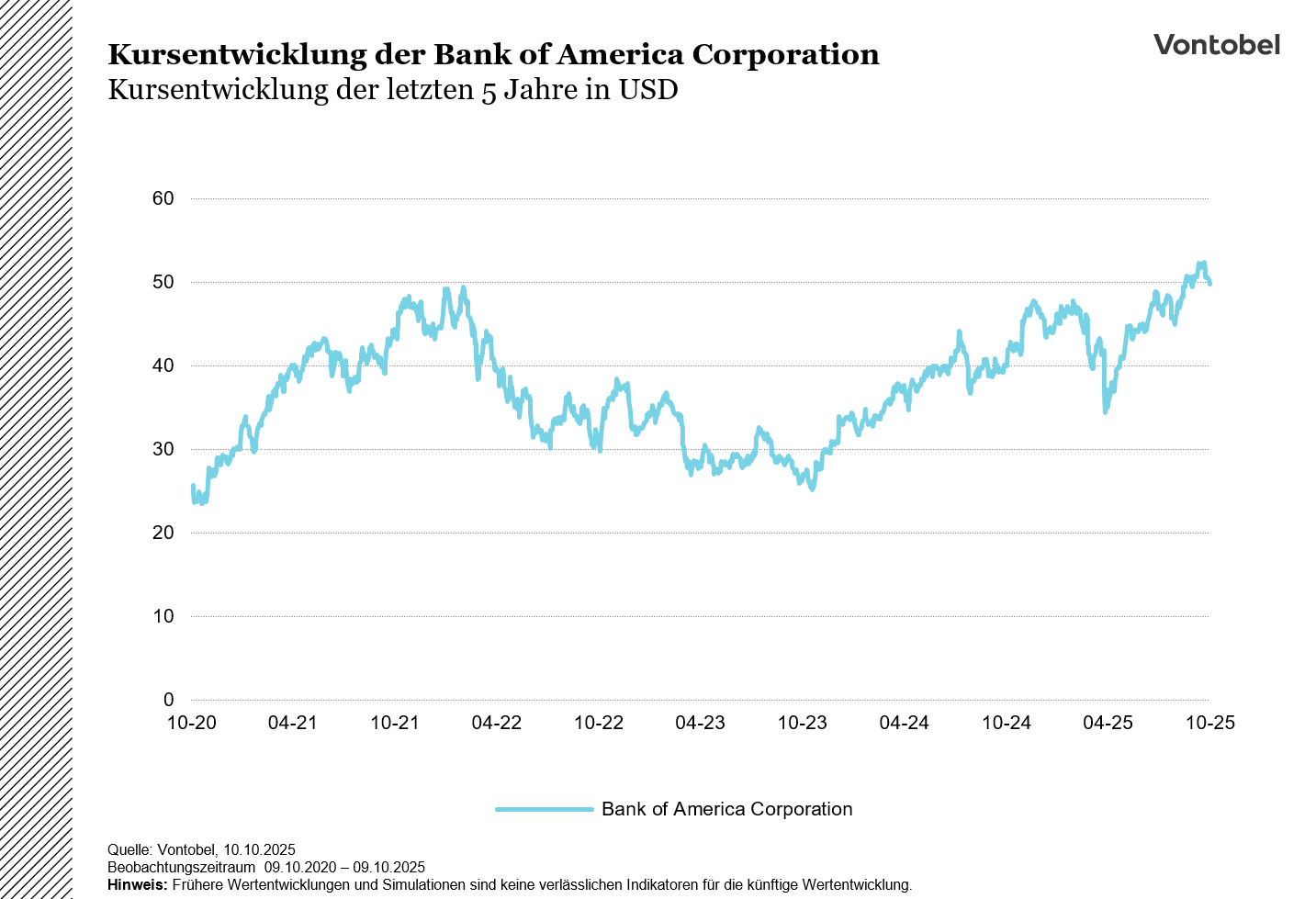Bank of America (BofA) kombiniert ein starkes Privatkundengeschäft mit einem stabilen Ertragsprofil aus Zinsen, Gebühren und Kapitalmarktaktivitäten. Dank einer breiten Kundendatenbasis kann die Bank präzise auf Konsumtrends reagieren, ein Vorteil, wenn sich die Wirtschaft 2026 wieder beschleunigt. BofA hat in den letzten Jahren gezielt in digitale Angebote investiert, etwa durchihrer KI-basierte Finanzassistenz „Erica“ und fortschrittlichen Mobile-Banking-Lösungen. Diese Digitalisierung erhöht nicht nur die Kundenbindung, sondern reduziert langfristig auch Kosten. Mit ihrer konservativen Kreditvergabepolitik und soliden Kapitalquote ist BofA gut positioniert, um von einer möglichen Erholung im US-Kreditmarkt und einer anziehenden Nachfrage im Mittelstandssegment zu profitieren. (Bank of America Corp., Q2 2025 Earnings Call, 16.07.2025)